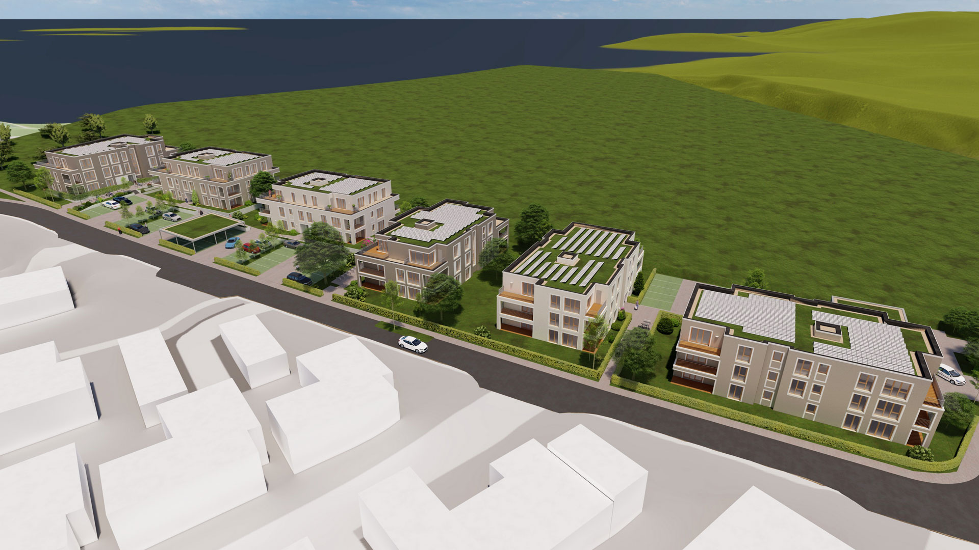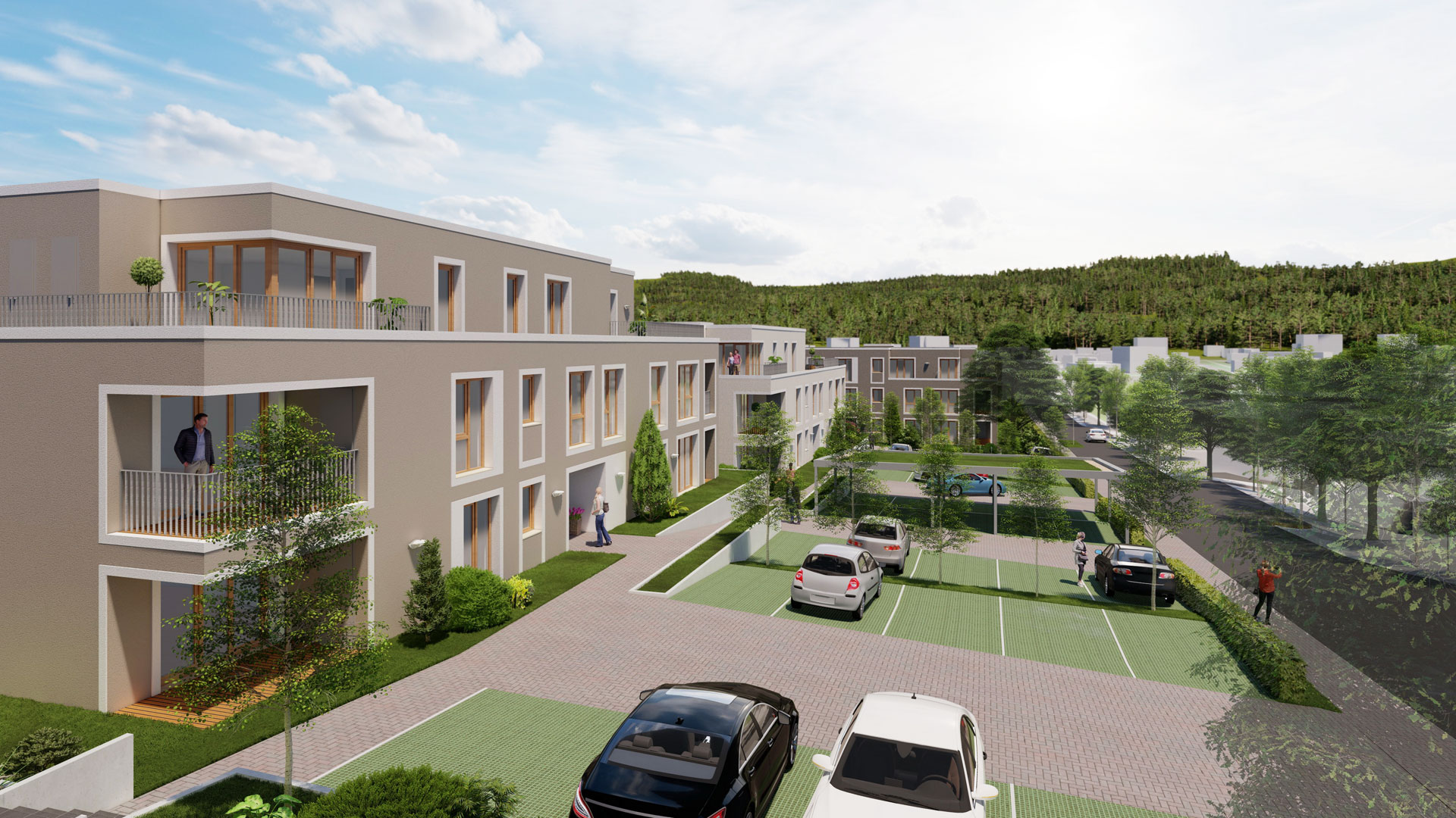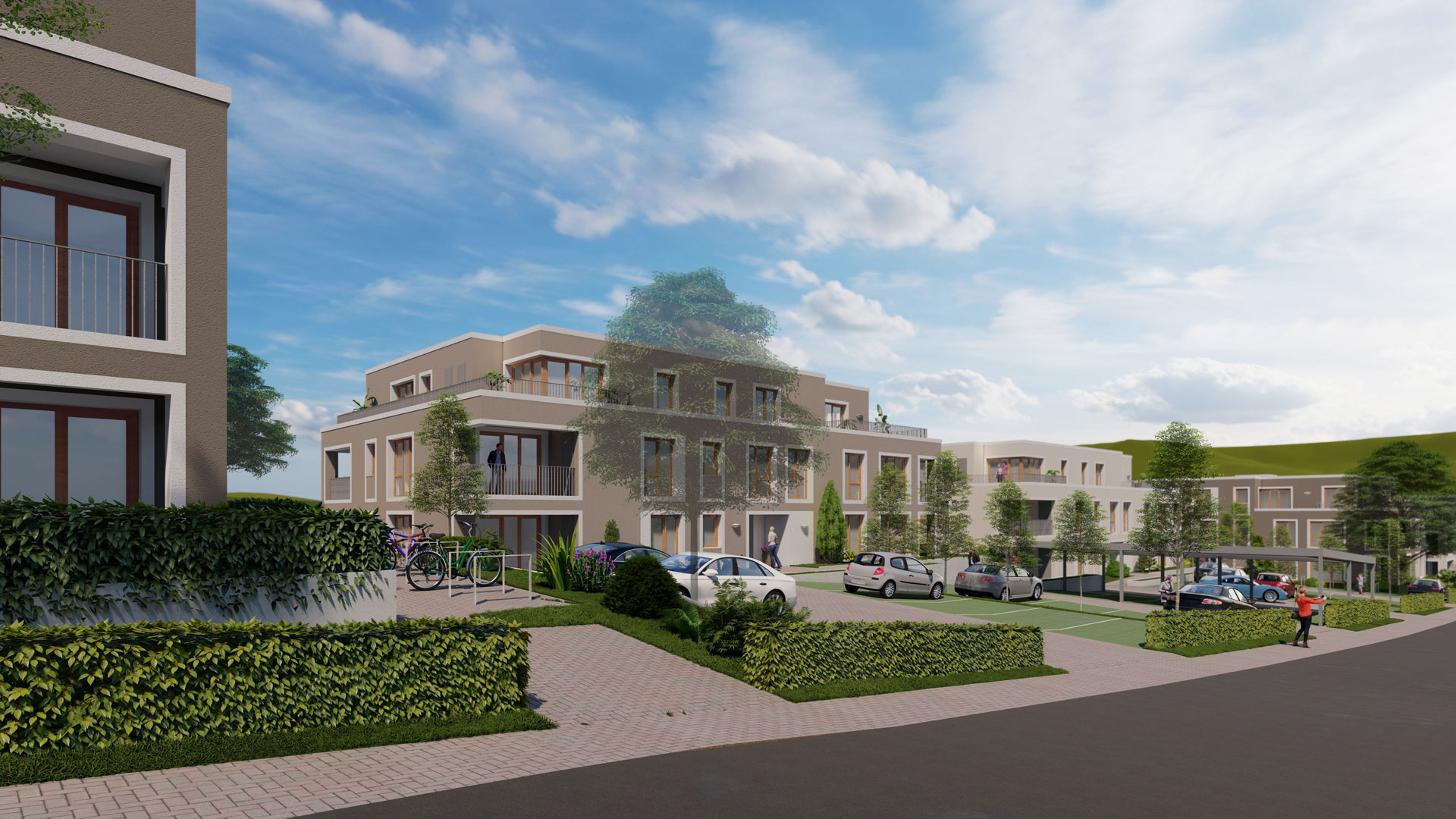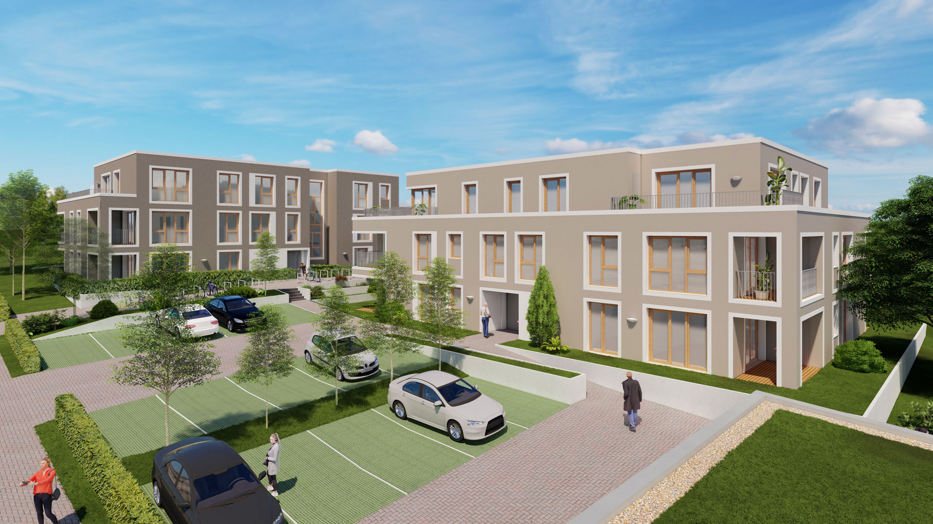 beiden weiteren 3-geschossigen Gebäuden vorgesehen.