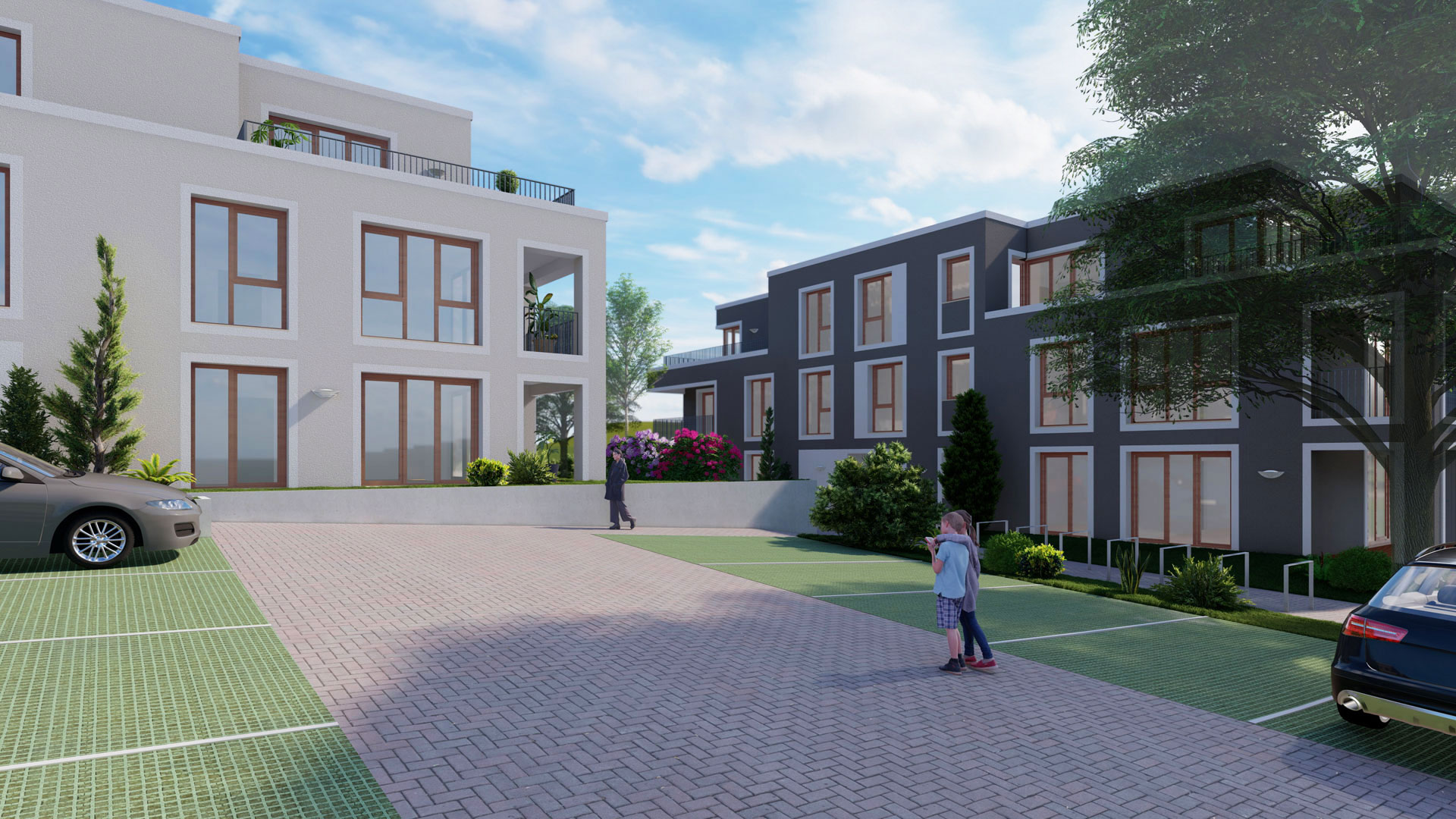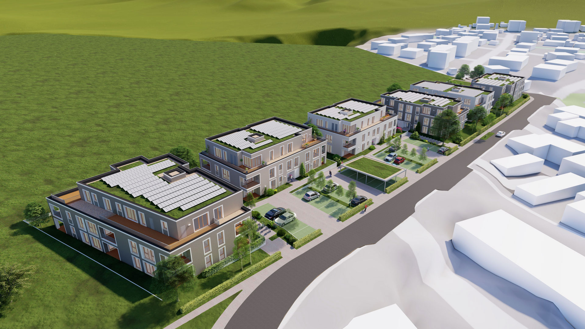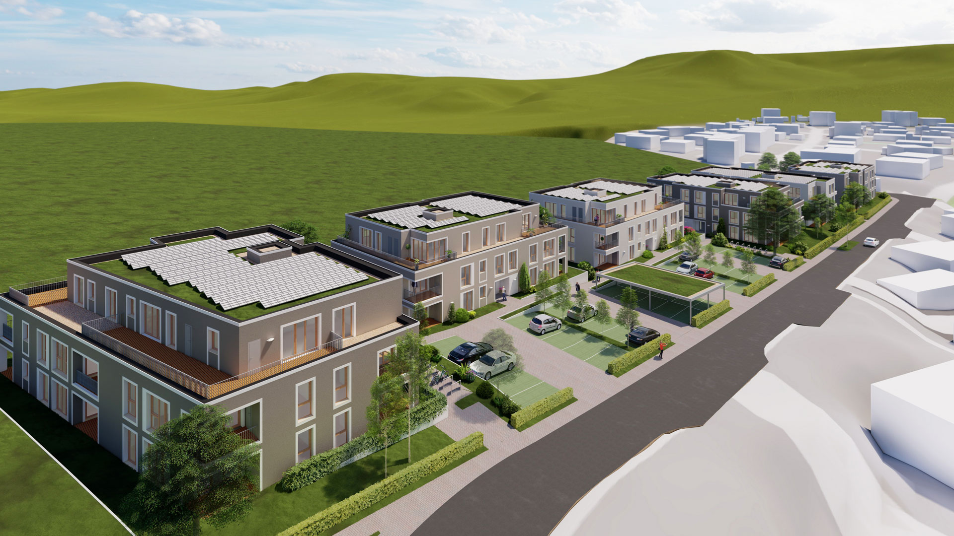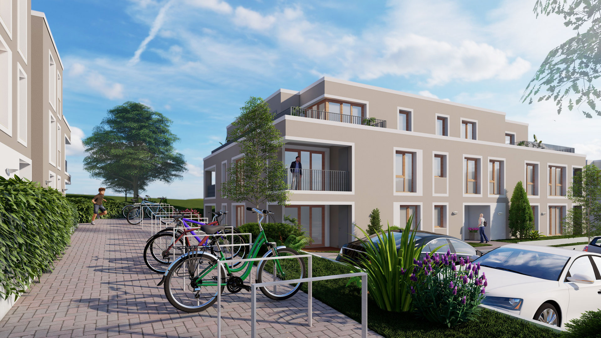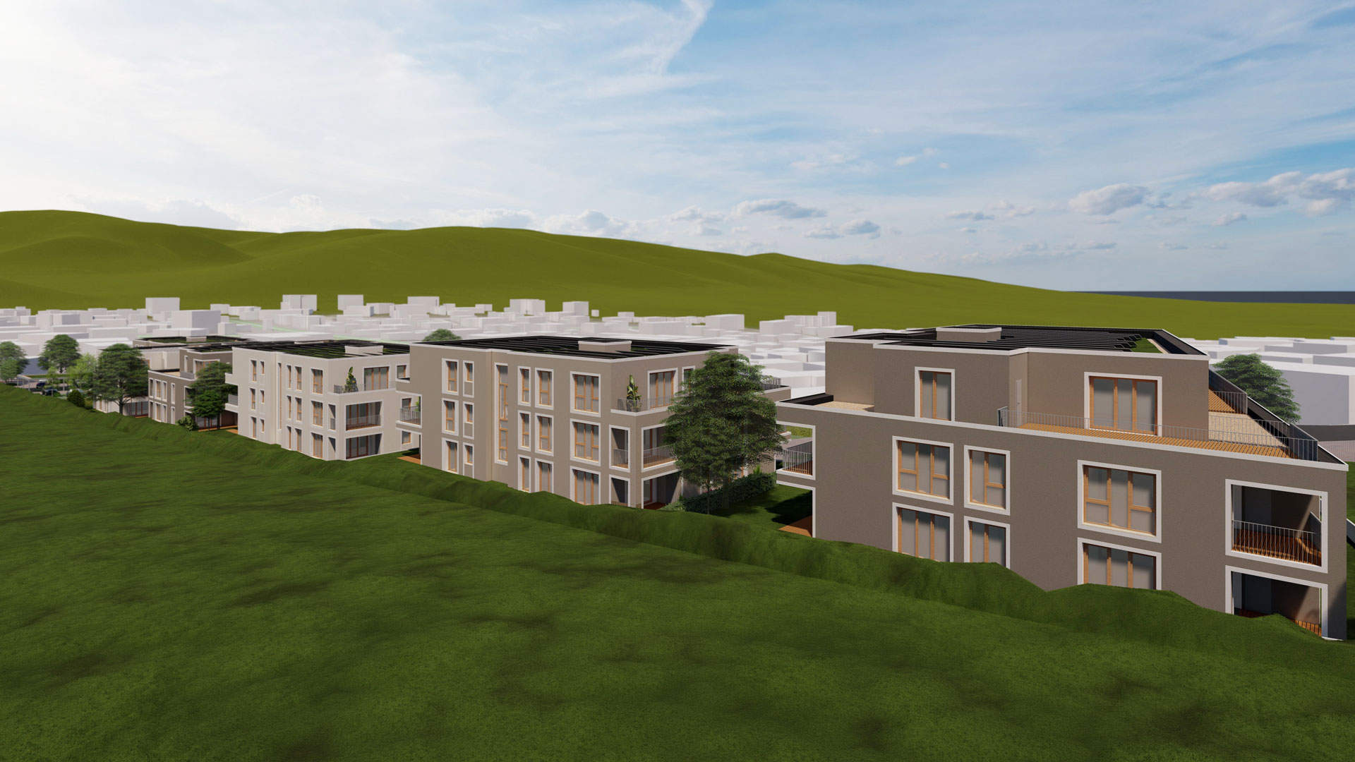 beiden weiteren 3-geschossigen Gebäuden vorgesehen.